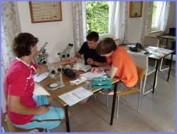 Die Vogelgruppe umrundet den gesamten Boiensdorfer Werder und sucht nach weiteren Vogelarten. Unsere Pflanzengruppe schießt die letzten Fotos für ihre Präsentation. Unter dem Mikroskop untersucht die Seegras- und Blasentanggruppe unseren Fang und die Gruppe der Wasserchemie nimmt weitere Wasserproben und sucht nach Ursachen für die unterschiedlichen Werte der Messungen.