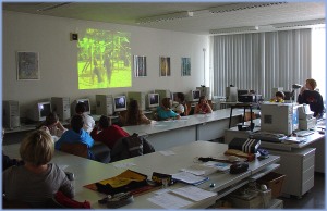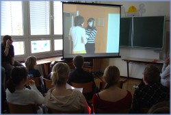 ![]() Medientechnisch gekonnt präsentierten Alexander, Stefanie und Angelina selbst gedrehte Videofilme von der Erfurter Krämerbrücke und von den Radwanderwegen im Unstrut-Hainich-Gebiet, natürlich in Englisch. | |||