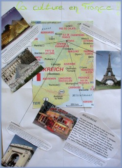 Die Klassenräume waren je nach Thema geschmückt: Grün durch die Klasse 6 für den St. Patrick’s Day, der ja einen Tag vorher in Irland gefeiert wurde, typisch englisch dekoriert für einige Rätsel und Puzzle in anderen Räumen. An einer anderen Station wurden Collagen von England, Frankreich, Irland und den USA zusammengeklebt. Darüber werden die Schüler noch im Englischunterricht länger reden dürfen, um diese selbst hergestellten Unterrichtsmittel zu beschreiben. |