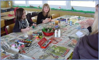 ![]() Osterstimmung kam bei den Zehnern auf, die Osterbräuche aus England vorstellten und sogar Phillip in ein Osterhasenkostüm steckten. Hiermit danken wir übrigens der Greußener Frischei GmbH für die gesponserten Eier. | |||