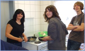In der Schulküche duftete es nach gebackenen Bananen, französischen Crepes oder frischen Fish and Chips. Nina hatte ihre Leute dort im Griff. Schon nach einer Stunde waren alle nett garnierten Happen vertilgt. |