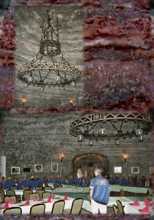 Wieder zurück am Ausgangspunkt unserer Fahrt konnten wir noch die Kegelbahn unter Tage betrachten. Im gewaltigen Konzertsaal hatten wir das Glück, einen Musikanten dabeizuhaben, denn Herr Hoffmann gab auf dem Klavier ein Musikstück zum Besten, was mit reichlich Applaus belohnt wurde. Zum Schluss betraten wir den runden Festsaal, wo wir die Gelegenheit bekamen, den salzigen Geschmack aus der Kehle zu spülen. Leider hatten wir alle unsere Rucksäcke und somit auch das Geld "über Tage" gelassen. |