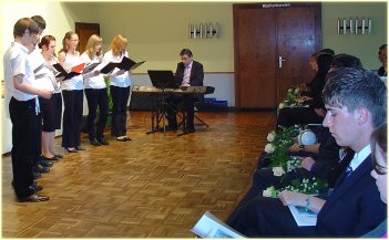 ![]() Glückwünsche, Dank und Anerkennung sprach er auch den Eltern und Großeltern aus, die unseren Schülern in den Jahren der Schulzeit stets zur Seite standen und sie auf ihren Wegen unterstützten. |