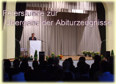 Die Anspannung der feierlichen Einstimmung weicht nun den Worten, die sich an die Hauptpersonen richten, und die Bedeutung der zurückliegenden Schulzeit erschließt sich durch den Vergleich von sportlichem Spiel, Training und Wettkampf mit Lernen in den oberen Klassen, der „Bundesliga des allgemeinbildenden Schulsystems” – eben der Abiturstufe. |