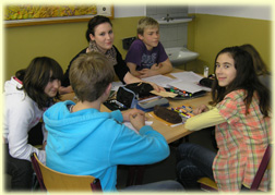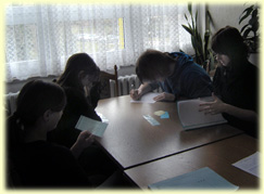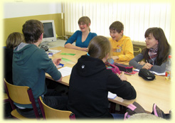 mit Aufgaben, die allein oder in einer Gruppe zu lösen waren,