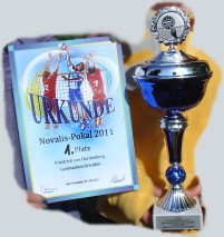 Zu unserer Mannschaft gehörten Andreas Kühn, Michael Hellinger, Alexander Berghoff, Henry Näder, Sonja Konschak und Olivia Doppleb. Unser gemischtes Team hatte sich im Spiel mit der Mannschaft des Gymnasiums aus Bad Langensalza/ Schulteil Herbsleben auseinanderzusetzen. Zunächst wurde der Gegner im ersten Satz sehr klar beherrscht und dieser mit 25 : 16 gewonnen. Im zweiten Satz leisteten die Gegenspieler erheblichen Widerstand, konnten aber am Ende nicht gewinnen (25 : 22). Somit war der erste Sieg perfekt. In der zweiten Begegnung hatte man wenig Mühe mit der Regelschule aus Bad Langensalza. Mit den Satzergebnissen 25 : 8 und 25 : 6 wurde der Kontrahent klar beherrscht. Somit kam es, wie schon mehrfach in den letzten Jahren, zum Endspiel Gymnasium Greußen gegen Regelschule Bad Tennstedt. In einem emotionalen Finale konnten unsere Spieler den ersten Satz mit 25 : 22 gewinnen. Die Regelschüler gaben nicht auf und setzten unsere Mannschaft mächtig unter Druck. Mehrfach wechselte die Führung. Beim Stand von 25 : 24 für Bad Tennstedt schien dieser Satz verloren. Jedoch mit einem kollektiven Kraftakt konnte der Satz mit 27 : 25 gewonnen und damit das Spiel für die Greußner Gymnasiasten erfolgreich beendet werden. Schon etwas stolz nahm unsere Mannschaft den Pokal aus den Händen des Schulleiters der Novalisschule Bad Tennstedt entgegen. Herzlichen Glückwunsch!!! Die Organisatoren und betreuenden Sportlehrer waren sich einig, dass es eine siebente Auflage geben soll. Ansporn für unsere jetzigen Neuner, im Volleyball am Ball zu bleiben, denn die Zehner des Schulljahres 2010/2011 haben mit dem Turniersieg eine große Hürde genommen. |