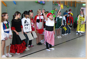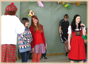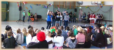 Die aufeinanderfolgenden Programmpunkte hielten das Narrenvolk bei bester Laune. Sonja und Philipp aus der Klasse 11 übernahmen die Moderation.