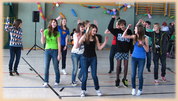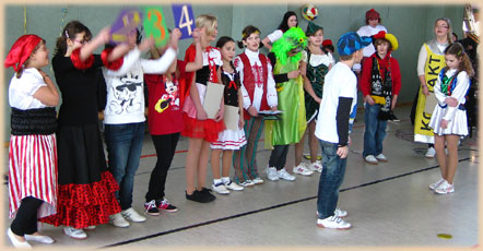Mit der ersten Darbietung gelang der Klasse 5a der richtige Auftakt: „Mana, Mana“ aus der blauen Tonne sorgte gleich für die passende Stimmung. |