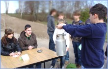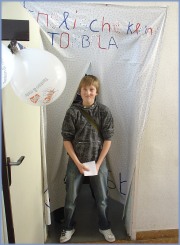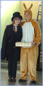 ![]() Osterstimmung kam bei den Zehnern auf, die Osterbräuche aus England vorstellten und sogar Phillip in ein Osterhasenkostüm steckten. Hiermit danken wir übrigens der Greußener Frischei GmbH für die gesponserten Eier. | |||
