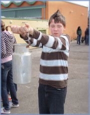 Auf dem Schulhof wetteiferten die einzelnen Klassen bei den von den Elfern organisierten schottischen Highlandgames: Baumstammwerfen, Tauziehen oder Gummistiefelweitwurf waren angesagt und brachten manchen Zuschauer zum Schmunzeln. Später wurden den Besten von Anne und Christian die Siegerurkunden überreicht. |
