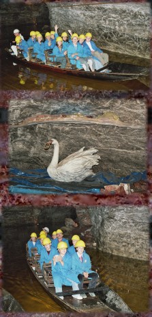 Weiter ging es zum See unter der Erde. Hier wurden wir auf drei Kähne aufgeteilt, die mit Batterien angetrieben wurden. Wir schipperten also eine Runde über den See, vorbei am Denkmal der heiligen Barbara, der Schutzpatronin der Bergleute. ![]() Dann kamen wir zur unterirdischen "Superrutsche". Die sah von unten gar nicht so schlimm aus, aber oben war das schon etwas anderes. |